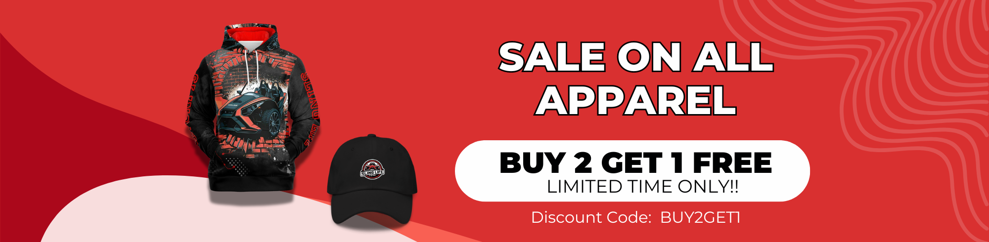 Introducing our "Buy 2 Get 1 Free" offer! This is your opportunity to stock up on our daring apparel and make a statement wherever you go. Whether you're driving in the mountains, attending an event, or exploring new territories in your slingshot, our unique and edgy products will set you apart from the crowd.